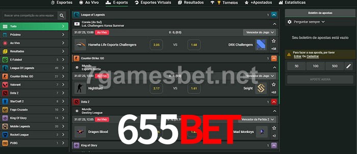 O 655bet oferece uma grande seleção de opções de apostas em e-sports com probabilidades competitivas